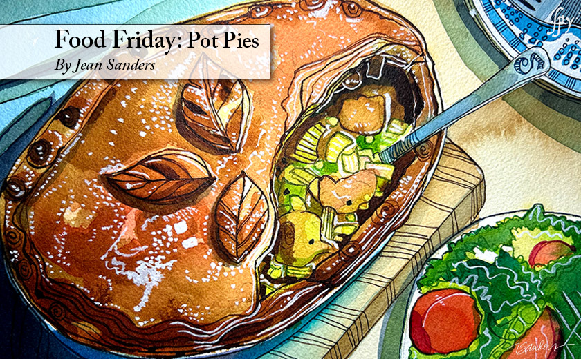 Here’s Martha’s take, although she spends quality time worrying about the crust. “Pshaw!” I say! Martha’s Chicken Potpie