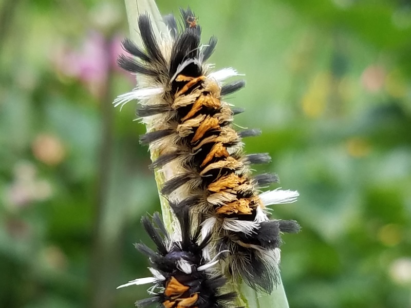 signal to potential predators that the caterpillars are toxic and not a good meal. Handle this caterpillar with care! Touching their hairs can result in an uncomfortable rash.