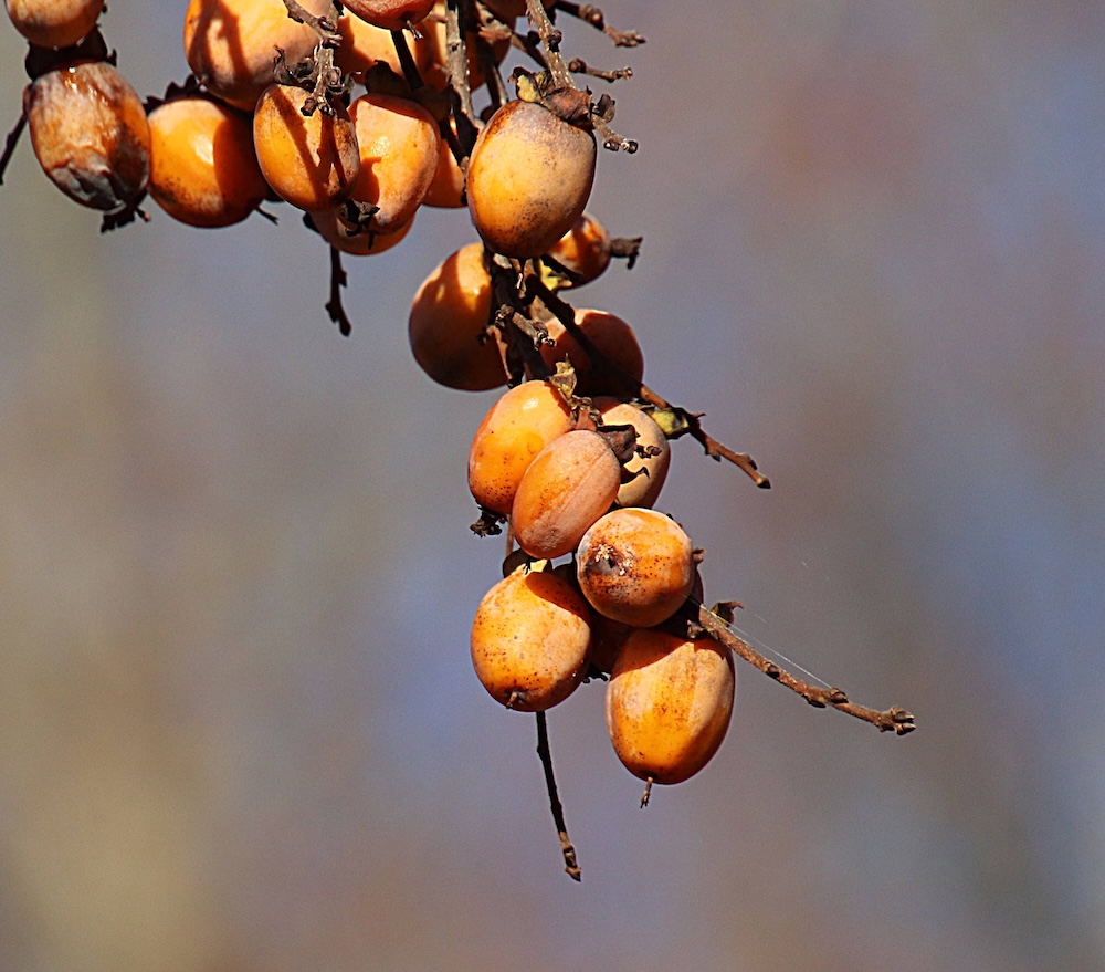 The common persimmon, Diospyros virginiana, is a slow-growing native tree found across the central and eastern United States, from Connecticut to Florida and west to Texas. In Fall, its walnut-sized orange fruits begin to appear—often overlooked on the small, bare-branched trees as showier foliage steals the spotlight. Unripe persimmons are famously astringent, but once softened by frost or season, the ripe fruit becomes a sweet, custard-like treat.
