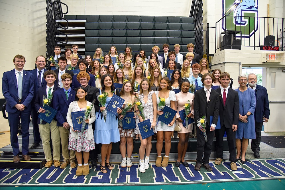 The Gunston School is pleased to welcome a record breaking number of 47 students to the National Honor Society (NHS). Joined by their families, students assembled in Gunston’s Field House for the ceremony. Membership in NHS is offered each fall to students who meet the national standards for scholarship, leadership, service, and character. Candidates submit a comprehensive resume detailing their activities and achievements. Character evaluation includes a review of school records and professional reflections provided by four faculty members on the student’s conduct and citizenship.