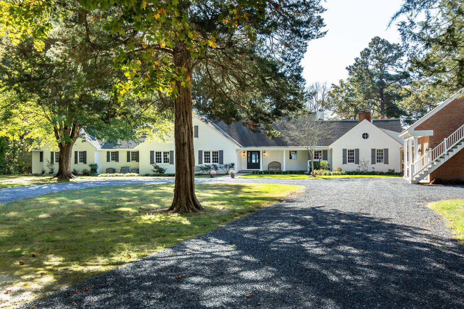 The couple were quite fortunate to have bought an end unit with its rear brick terrace looking overlooking the lawn and fence with a gate that leads to the community open area with walking trails. When I drove up to their unit on the day of my tour, I also appreciated their lot’s privacy from being located on a slight curve which gave them a larger side yard and how a tall row of cedars along the driveway also hides parked cars.