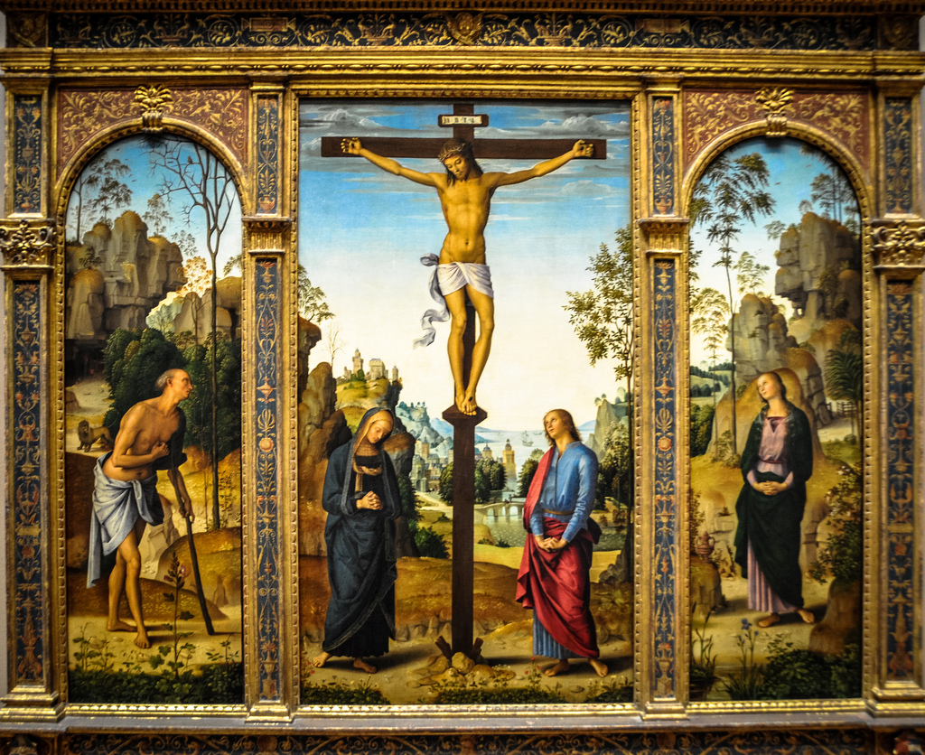 “Crucifixion with the Virgin, St John, St Jerome and St Mary Magdelen” (1482-85)