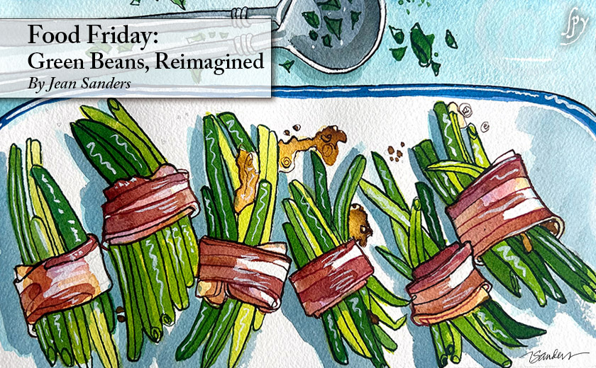 I just love these bundles of beans trussed up with ribbons of bacon: Green Bean Bundles