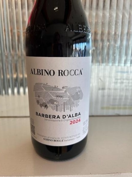 This weekend at Piazza Italian Market, we will taste the Barbera d’Alba 2024 DOC ($18.95, 13.5% ABV) from the Albino Rocca winery in the town of Barbaresco, Piemonte. The artistic black and white label is an abstract depiction of Barbaresco’s undulating hills.