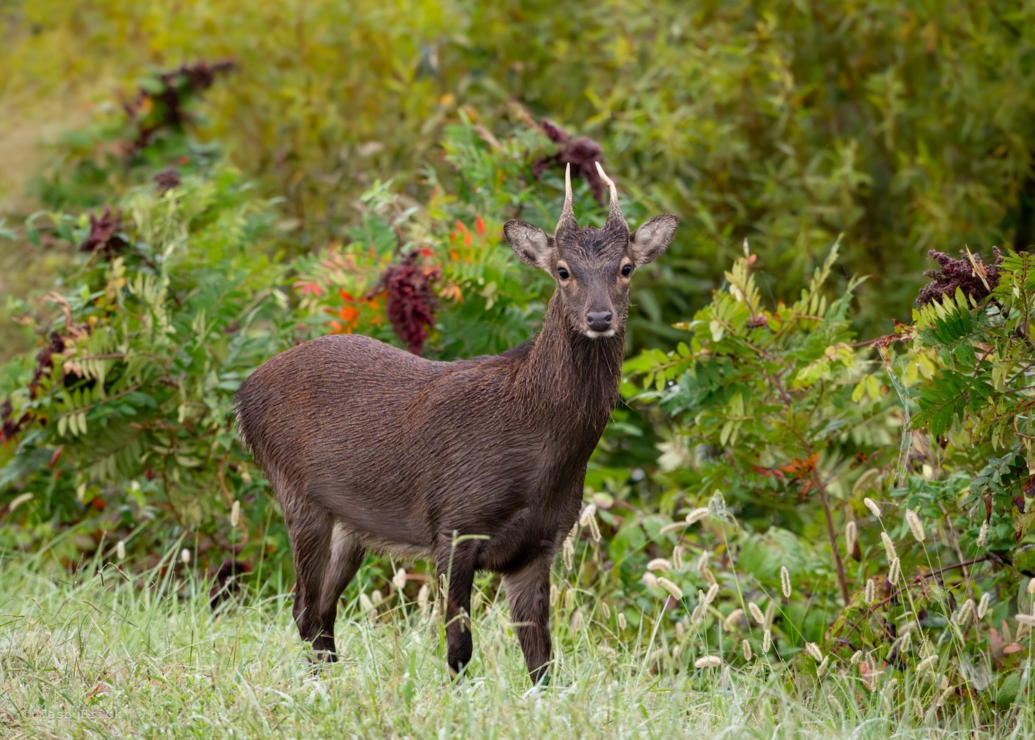 A young sika deer stag strikes a pose in the Blackwater National Wildlife Refuge.