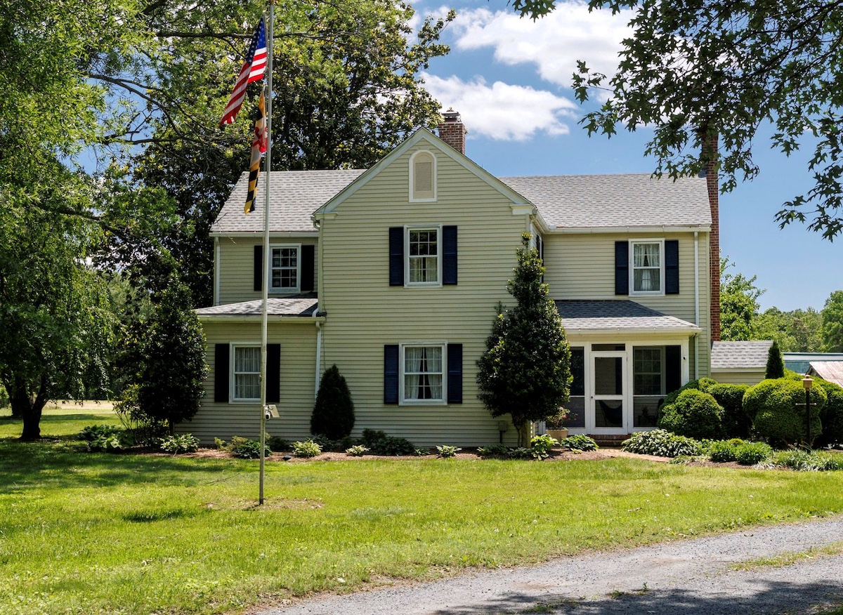 This special 2+/- acre property is just over a mile from Easton, yet the house’s location at the end of a long and curved driveway, surrounded by farmland, offers privacy and peace. The quintessential Eastern Shore farmhouse has been well maintained by the Owners for nearly twenty-five years. They enhanced the existing mature landscape under the canopy of mature Willow Oaks and a majestic Magnolia with English boxwoods, hostas and annuals for seasonal color. The outdoor room of the brick terrace at the rear of the property provides vistas of the wooded border along the property line, broken by a gap that extends the vista across the fields to the wooded area in the far distance.