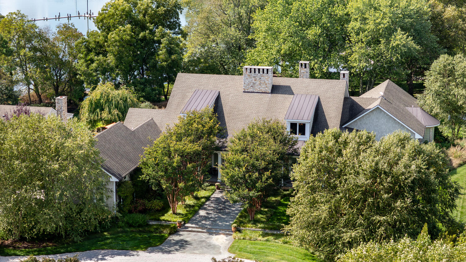This expansive estate takes full advantage of its prime position along 10+ acres of Caulk Cove’s tranquil shoreline.