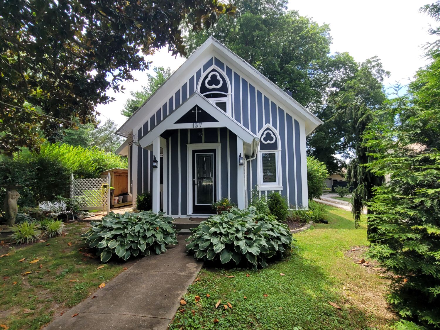 Originally a wayside Chapel, this darling Kent County home sits back from the street among lush landscaping, framed by native plants