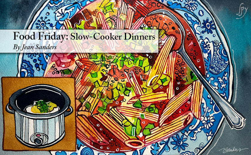 We are adrift this year, between homes, and need a little cosseting. But we also have a new town to explore; we’d like to be a little more foot loose and fancy free, and don’t want to be stuck in a pokey apartment all day long – so a Crock-Pot® is the answer. We can load it up with tasty ingredients, run out for a few hours to case the new neighborhood, and come back to the apartment, that for an evening, will smell like home, and our dinner will be waiting for us. Genius.