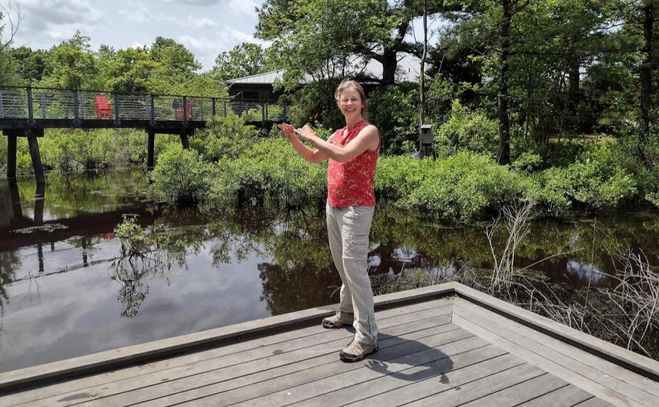 Carrie Rose intertwines solo flute with recorded owls, grasshoppers and water. As dusk falls on Sat., June 17, these sounds will mingle with breezes, bird and frog calls and stirring turtles and fish when Rose performs Breathing in Nature on the wetland boardwalk at Adkins Arboretum. All are invited to attend.