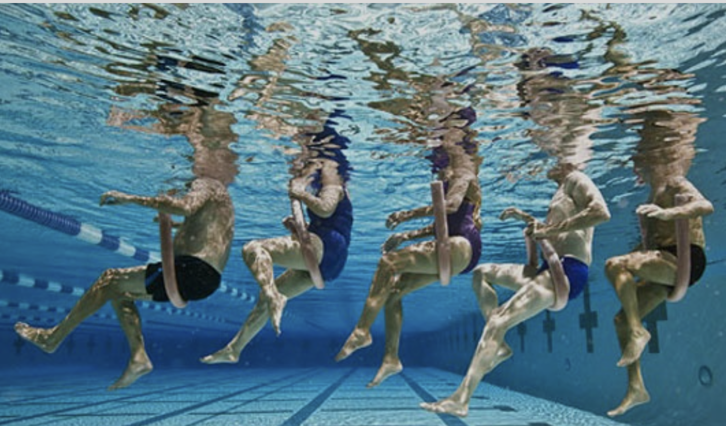 Other than water walking or swimming laps, there are so many other ways to work out in the water. Using noodles, barbells and/or a flotation belt you can enjoy a cardio routine or perform strength and flexibility, even core exercises in the deeper water.