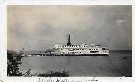 Thanks to Genevieve Townsend we have this wonderful photo. Does anyone remember when bananas we a treat? “Steamboat “Dorchester” that stopped at wharf in Windy Hill, MD to pick up apples and peaches from local orchards. Remember my grandmother bought bananas when the boat came down.