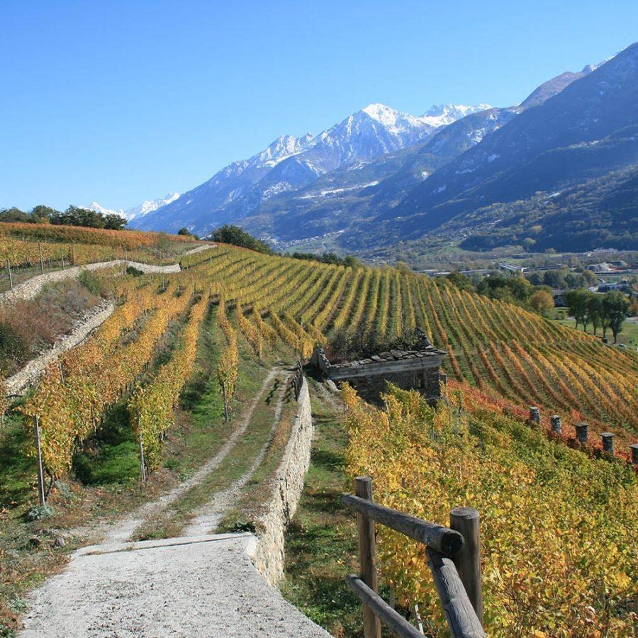 The family settled in a village in the high mountain passes where they initially raised cattle. During the summer, they also grew both grapes and chestnuts. They stocked up on wine to endure the long winters and in 1968, the family patriarch, Dauphin Grosjean, presented his wine at a local exposition where his wines’ exceptional quality was recognized and led the family to devote themselves to vinticulture. In Valle d’Aosta, viniculture is called “heroic” for the challenges posed by high altitudes, steep slopes and terraces, requiring all back breaking labor to be done by hand.