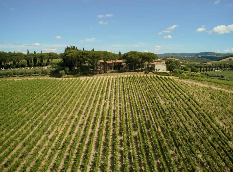 The winery is located in a picturesque landscape with vineyards gently sloping down to the Tyrrhenian Sea, Giglio Island and Monte Argentario. The estate totals 97 hectares, 45 of which are devoted to viticulture in three vineyards including Magliano; the other 52 hectares contain the winery, agritourism facility, olive groves and woodlands.